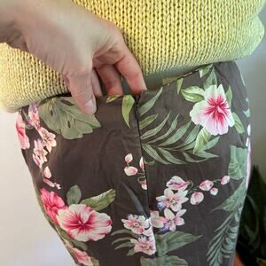 Jones Vintage 90s Brown Tropical Floral Print Cotton Summer Mini Skirt Size 14