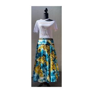 Jones Wear A-Line Abstract Floral Midi Skirt Size 6 Blue and Yellow