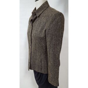 Brown Tweed Button Front Lined Blazer Feminine silhouette 2 side pockets