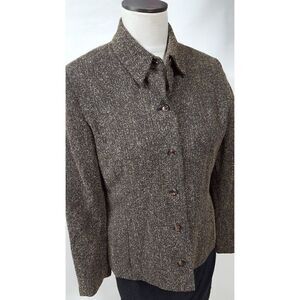Jones Wear Brown Tweed Blazer Size 12P Button Front Lined Career Office Wear