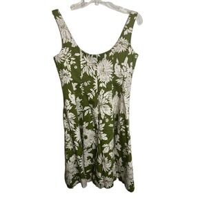 Jones Wear Dress 10 Green Floral White Summer Spring Midi Length