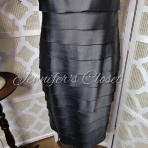 Jones Wear Dress Black Satin Tiered Cocktail Dress Size 10
