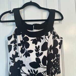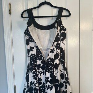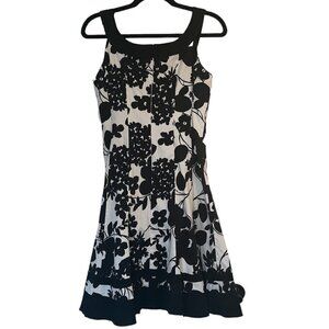 Jones Wear Dress Black & White Vintage Inspired Floral Fit & Flare Round Neck Women's Size 4