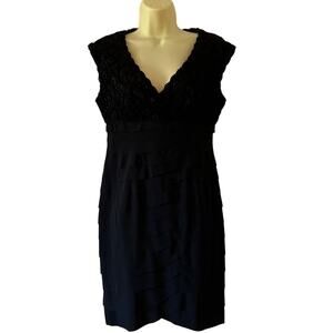 Jones Wear Dress Petite Black Bandage Dress Lace Bodice Size 8P LBD Cocktail