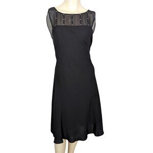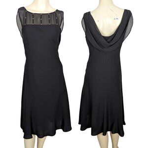 Jones Wear Dress size 12 Black sleeveless mesh neck and cowl back diamond beads