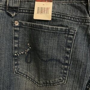Jones Wear Jeans women’s 14 sequin Studded pocket High Rise Waist Big Flare Leg western style belt loops. New with tags. Baggy