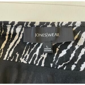 Jones Wear Midi Skirt Elastic Waist Zebra Print Black White Lined Flowy Sz Lg