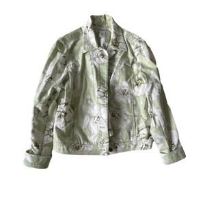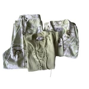 Jones Wear Sport 3 Piece Set Jacket Pants Top Floral Denim Mint Green L/14 EUC