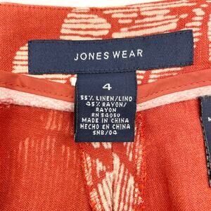 Jones Wear Womens 4 Linen Blend Wide Leg Pants Fall Floral Rusty Orange Boho