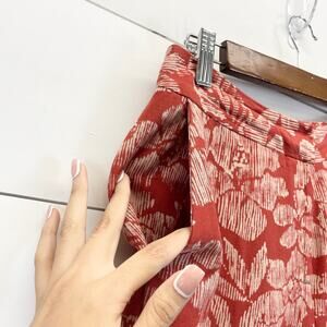 Jones Wear Womens 4 Linen Blend Wide Leg Pants Fall Floral Rusty Orange Boho