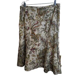 Jones Wear Women's Linen Blend Abstract Paisley Print Retro Look Midi SkirtSz 18