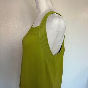 olive green, ribbed texture, square neckline, knit blouse, retro style, fitted, casual top, feminine, sleeveless, 90s