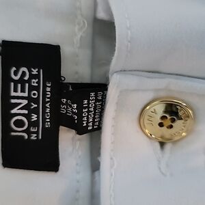 Super stretchy with cuffed hemline. Gold zippers and buttons make these pants pop with Class! Blueing around waistband.