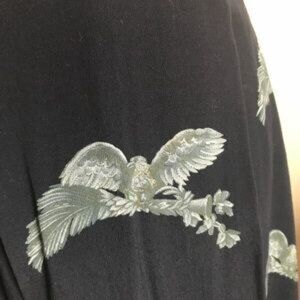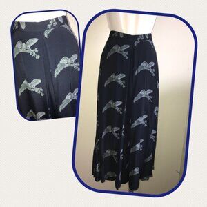 Royal blue midi skirt with eagle print. Side zipper and one front pleat