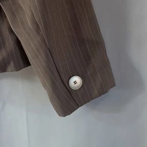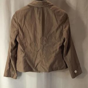 Jones wear Petite size 12P striped blazer Preowned Tan/pink 97% Polyester, 3% Rayon Work Jacket Striped print faux pockets shoulder pads