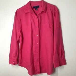 Jones wear blouse button up top women xl linen cotton pink coastal spring