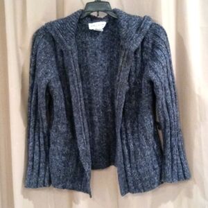 Jones wear sweater/hood wool-blend size medium Gray very warm no flaws except for the belt loop which needs a stitch .missing belt, loops could be removed or sewn back and belt substituted.measurement are 23" pit to pit and 23" long