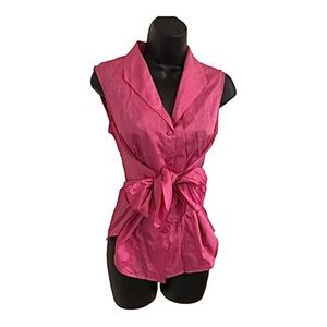 JonesNY pink silk look button down waist tie sleeveless blouse top size 4 new