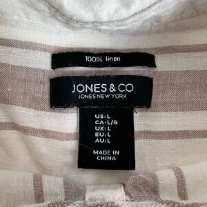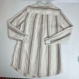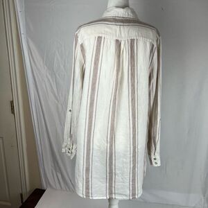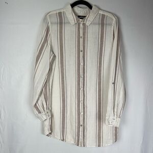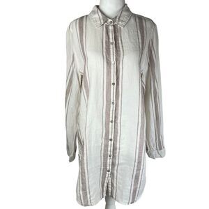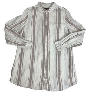 Jones New York 100% Linen White Striped Long Sleeve Tunic Button Down Up Women’s