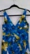Cotton blend stretch sleeveless V-neck panelled knee length bodycon in blue and green tropical floral print by Jones New York.