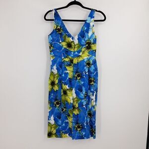 Jones New York Dress Panel Bodycon Sleeveless Tropical Floral Blue Sz 4