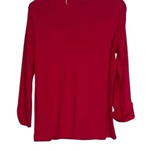 Jones New York Red Boat Neck Button Roll Tab Sleeves Top Ladies Size Medium