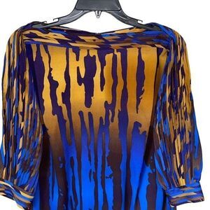 Jones New York Womens Abstract Shift Dress Gold Blue Size 8 NWT