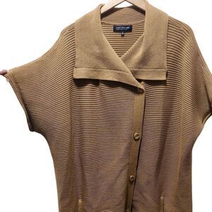 Jones New York brown ribbed knit button front double breasted sweater 1X pockets
