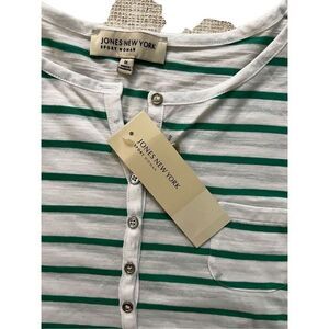 Jones New York top have heads turning! The refreshing green stripe pattern on this adorable tee will make you stand out. Crafted with soft and comfortable fabric, you'll never want to take this tee off. It features a classic crew neckline, a timeless horizontal stripe pattern, and a comfortable fit that's perfect for everyday wear ideal for business or casual outfits. New with tags . Retail value $54
