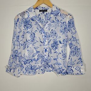 Jones New York Blue and White Flora Button Shirt