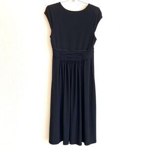 Jones New York Black Dress Sz 8. Condition is Pre-owned. Excellent condition. Material: polyester, spandex. Measurements: length 41”, pit to pit 19” across. Stretchy, side zippier.