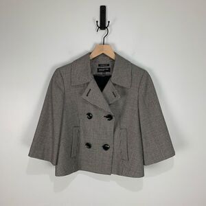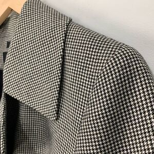 Pre-owned, good condition. Small houndstooth black and white pattern blazer jacket. Double breasted buttons. Pit to pit= 19”, shoulder to hem= 22”.
