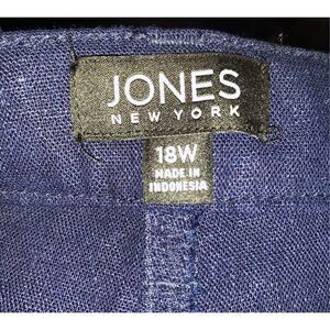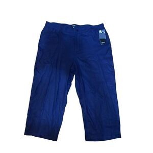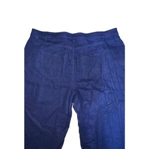 Navy blue plus size cropped pants. Five pockets. Belt loops. Button and zip closure. 55% linen/45% viscose. Size: 18W. Original price: $99.50. NWT.