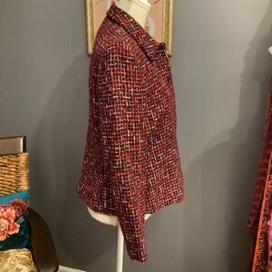 Nice quality, acrylic/mohair/poly blend, fully lined jacket in jewel colors of magenta, purple, blue and orange. Size 10.