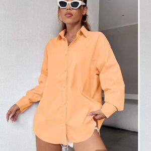 Jones New York Orange LINEN Blend BUTTON DOWN Shirt Size Large