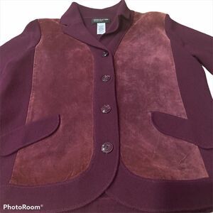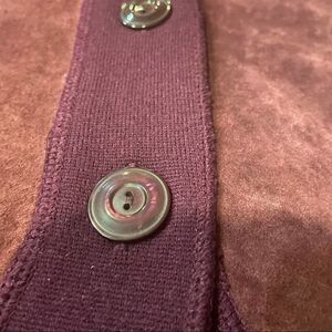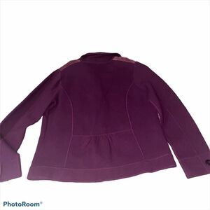 PreLoved💕 in excellent condition Jones New York Plum Stretch With Leather Panels Knit Long Sleeve Button Sweater Jacket size Medium