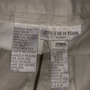 Beige khaki skort. Button front. Elastic side waist. Belt loops. Front pockets. Back pocket with button closure. Inner zip. Skirt shows on front and shorts on back. 100% cotton. Size: 6. Preowned in good condition.