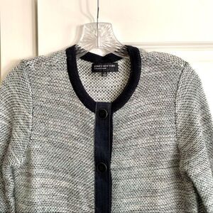 Jones New York mohair sweater with faux leather trim along pockets and buttons. Worn once, perfect condition.