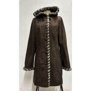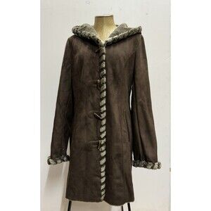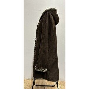 Jones New York women size M brown faux suede faux fur fall winter hooded coat
