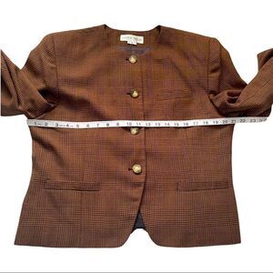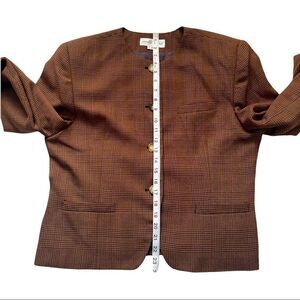 Jones Wear Brown Plaid Round Neck Blazer Sz 16