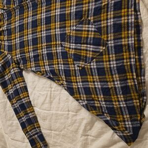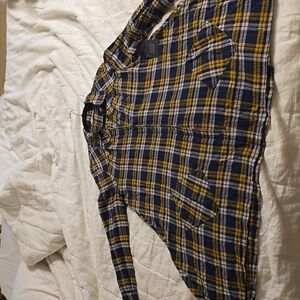 Stylish plaid shirt dress with long sleeves. Features a classic button-up design.