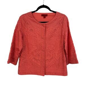 Joni B Y2K Coral Cotton Blend Embroidered Button Up Jacket Womens Small