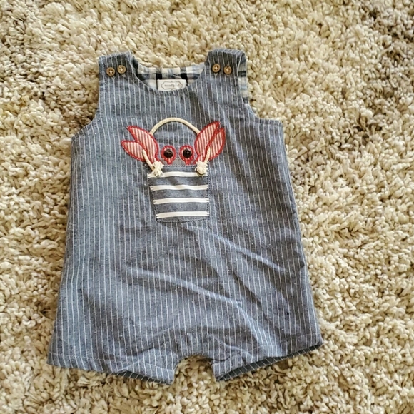 Blue and white stripe, crab in a bucket, Mud Pie JonJon. Size 3-6 months