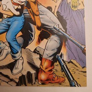 Jonny, Dr. Quest, Race and Hadji discover that no one is who they seem to be when they are summoned to South America to try to stop the flow of weapons to some revolutionaries in "Guns for the Laughing Man." Script by William Messner-Loebs and art by Marc Hempel & Mark Wheatley. Cover by Dave Stevens. Jonny Quest pinup on back cover.