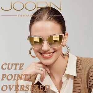 Joopin Oversized Mirrored Gold Cateye Sunglasses Fashion Cat Eye Sun Glasses