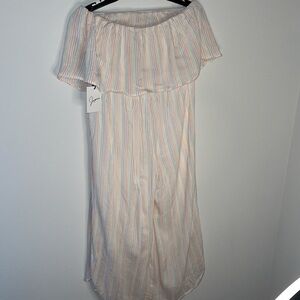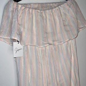 Jopna off the shoulder ruffle lightweight striped pull on jumpsuit Sz M