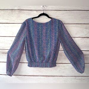 Add a touch of vintage flair to your wardrobe with this gorgeous blouse by Jopra. Featuring a flattering surplice (wrap-style) neckline, voluminous long sleeves, and a stretchy smocked hem, this lightweight floral top blends comfort with charm. The pink, blue, and green floral pattern creates a romantic, boho-inspired look.
