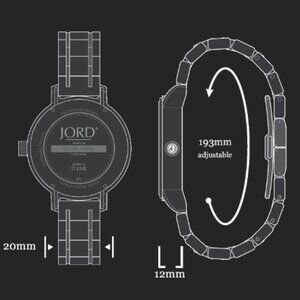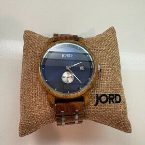 New, never worn, and sold out online – originally purchased for my son who never wore it all links are intact. Please see photos 3 & 4 for measurements. The battery was replaced on October 10th. The Hyde Kosso & Zaffre Blue watch by JORD embodies quiet luxury with its minimalist design, handcrafted kosso wood case, and deep zaffre-blue dial. Built with Citizen Miyota quartz movement for reliable precision and a scratch-resistant sapphire crystal face. Polished metal accents, date window, and sub-seconds dial add a modern finish. This striking yet understated piece bridges natural craftsmanship with sleek design — a perfect sustainable gift or collectible for any watch enthusiast. The Hyde is splash-proof but should not be submerged in water (3 ATM).