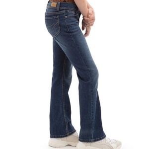 Design: Bootcut leg, zip fly with button closure, belt loops, classic 5-pocket styling