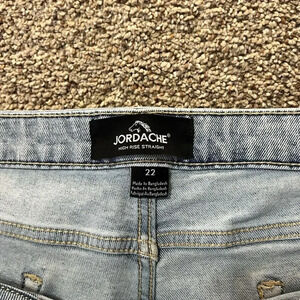 Jordache High Rise Straight Jeans Womens 22 Light Wash Denim Distressed Frayed
